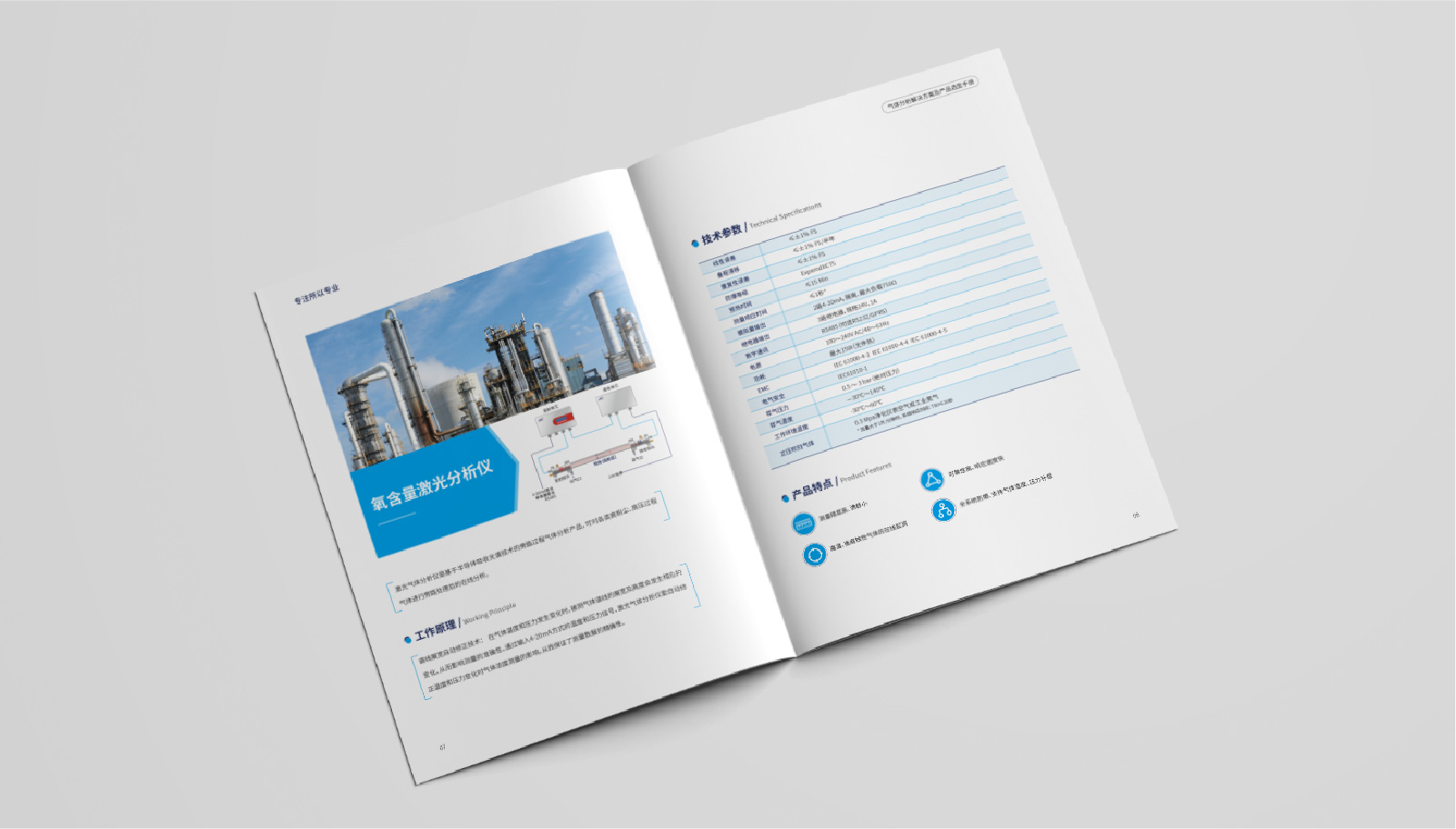 3、內頁將產品詳細展示,并針對每個產品進行細致介紹。同時,在每個產品介紹中加入工作原理、技術參數、產品特點等信息,讓客戶更全面地了解泰仲科技所提供的氣體分析解決方案及產品。