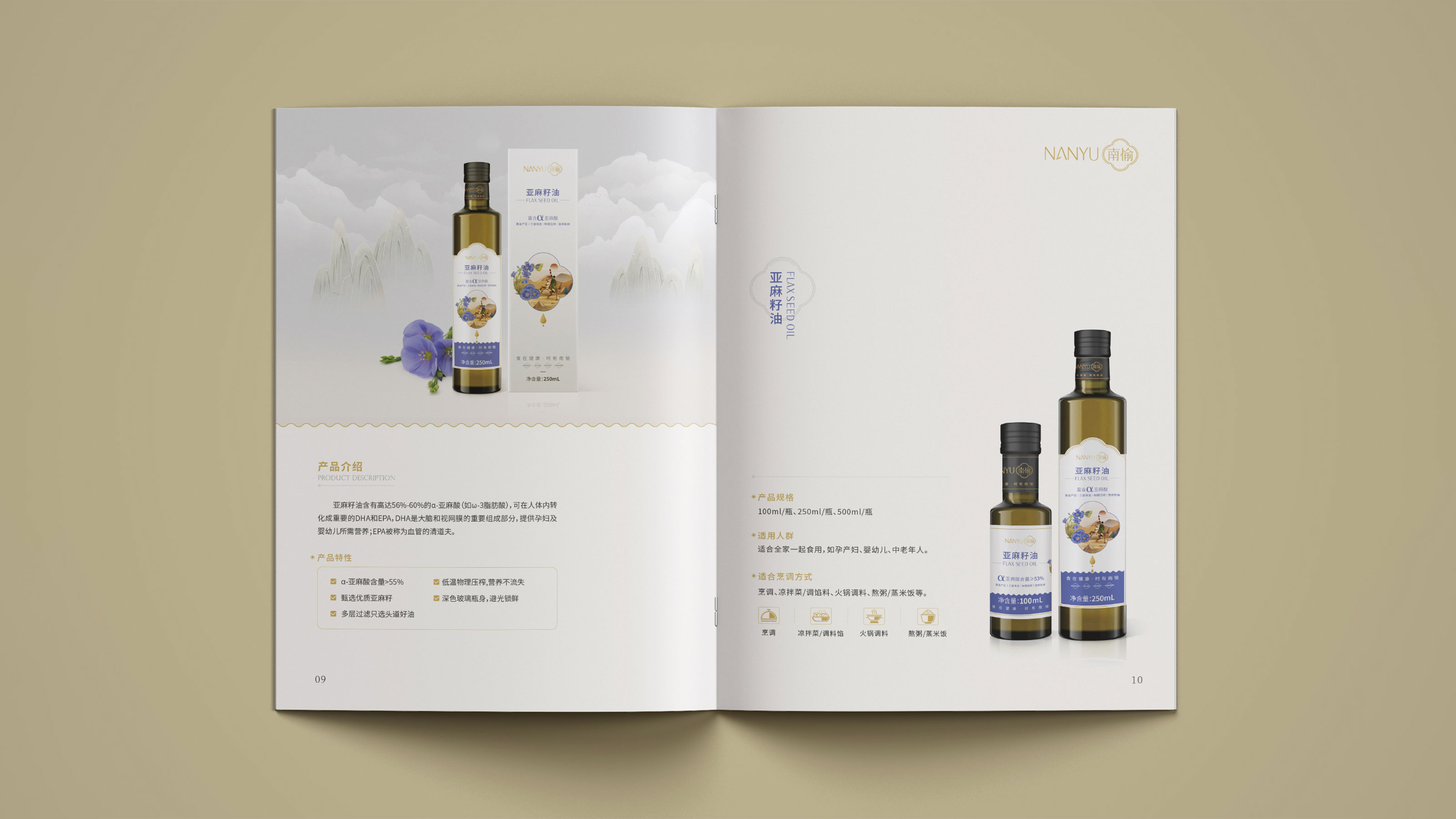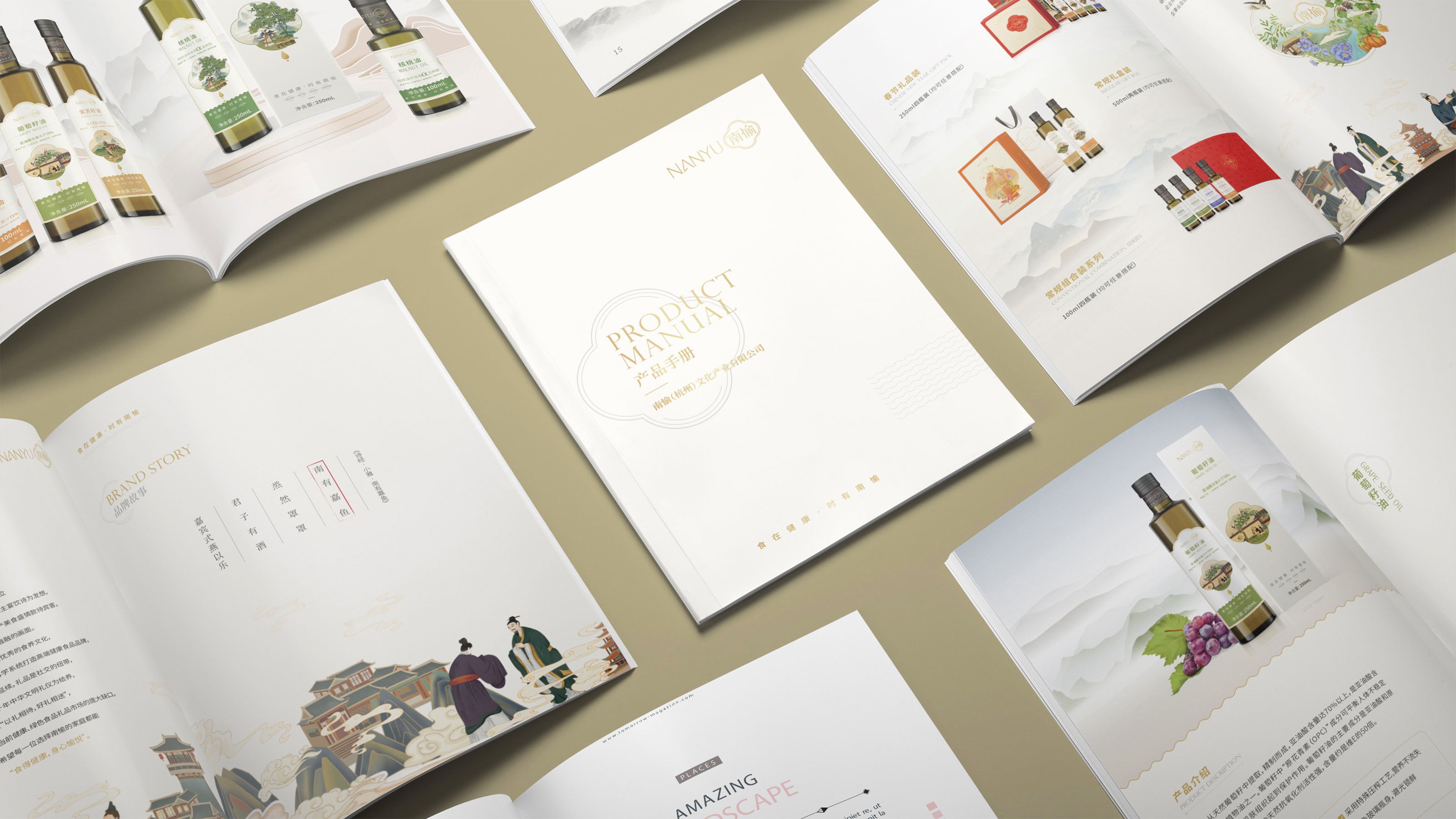 畫冊是企業(yè)及產(chǎn)品宣傳的重要表現(xiàn)形式之一,為更能夠突出展現(xiàn)南愉品牌的形象,石特進(jìn)行了深入的思考。在畫冊的設(shè)計中,石特結(jié)合南榆自身的品牌定位以及產(chǎn)品特性,決定將中國傳統(tǒng)文化融入其中。封面采用金色字體描出品牌logo和定位語,簡潔大氣,到了講品牌故事的頁面,一個原創(chuàng)手繪插畫故事進(jìn)入你的視線,令人欣喜的是,故事中人物的舉手投足之間滿是傳統(tǒng)禮儀的縮影,這與南愉的“以禮相待”非常契合,這還不夠,在后續(xù)品牌文化的闡釋以及產(chǎn)品的介紹中,傳統(tǒng)水墨作為背景點(diǎn)綴其中,無一不顯現(xiàn)傳統(tǒng)文化的獨(dú)特魅力,圖文的排版輕松自然,提升了人們對葡萄籽油、核桃油以及亞麻籽油產(chǎn)品的閱讀興趣,將“食在健康,時有南愉”體現(xiàn)的淋漓盡致。