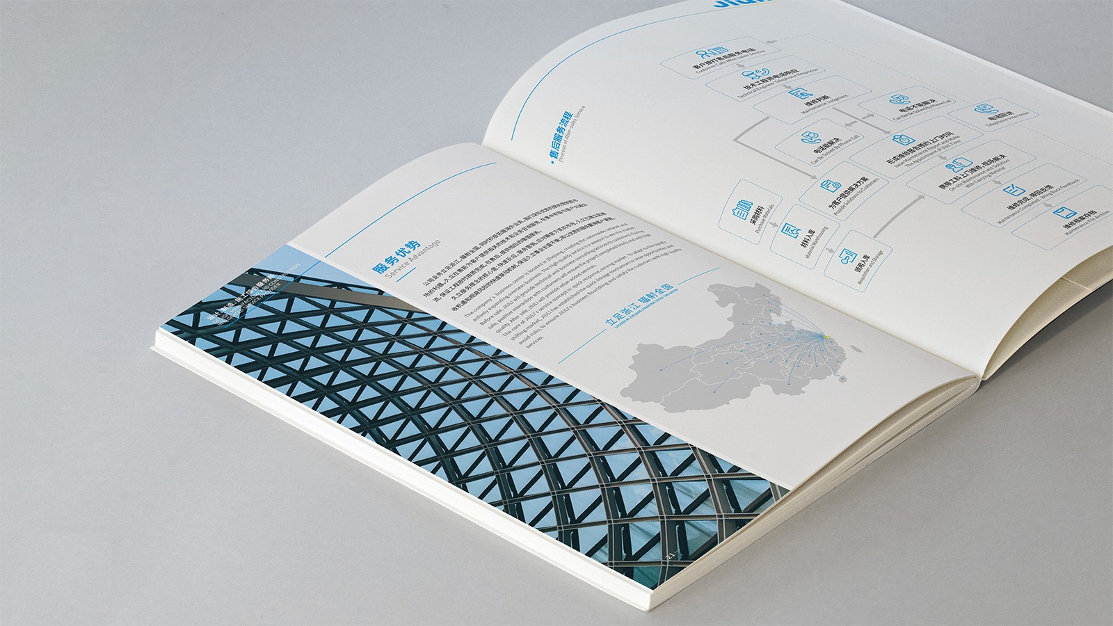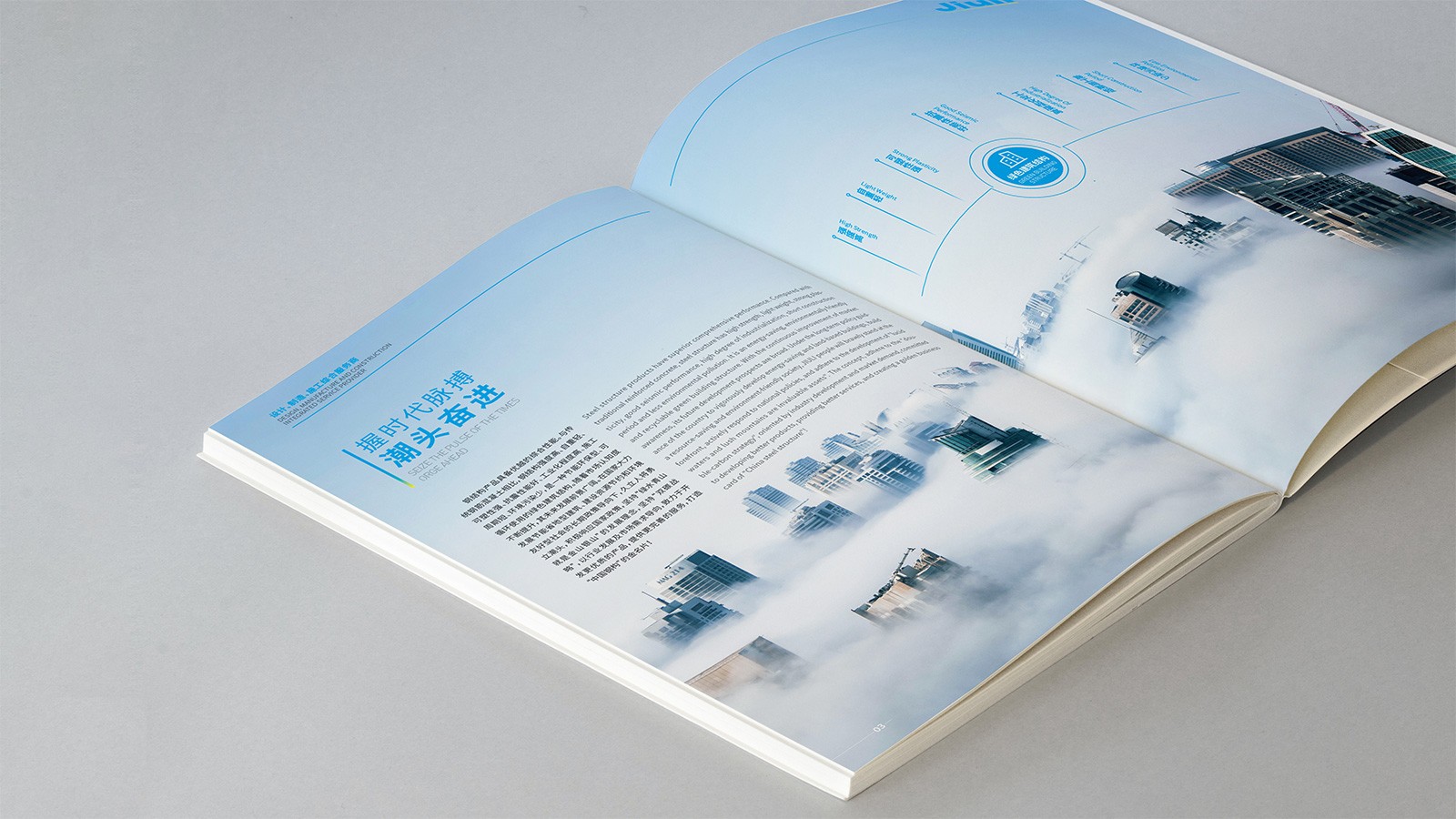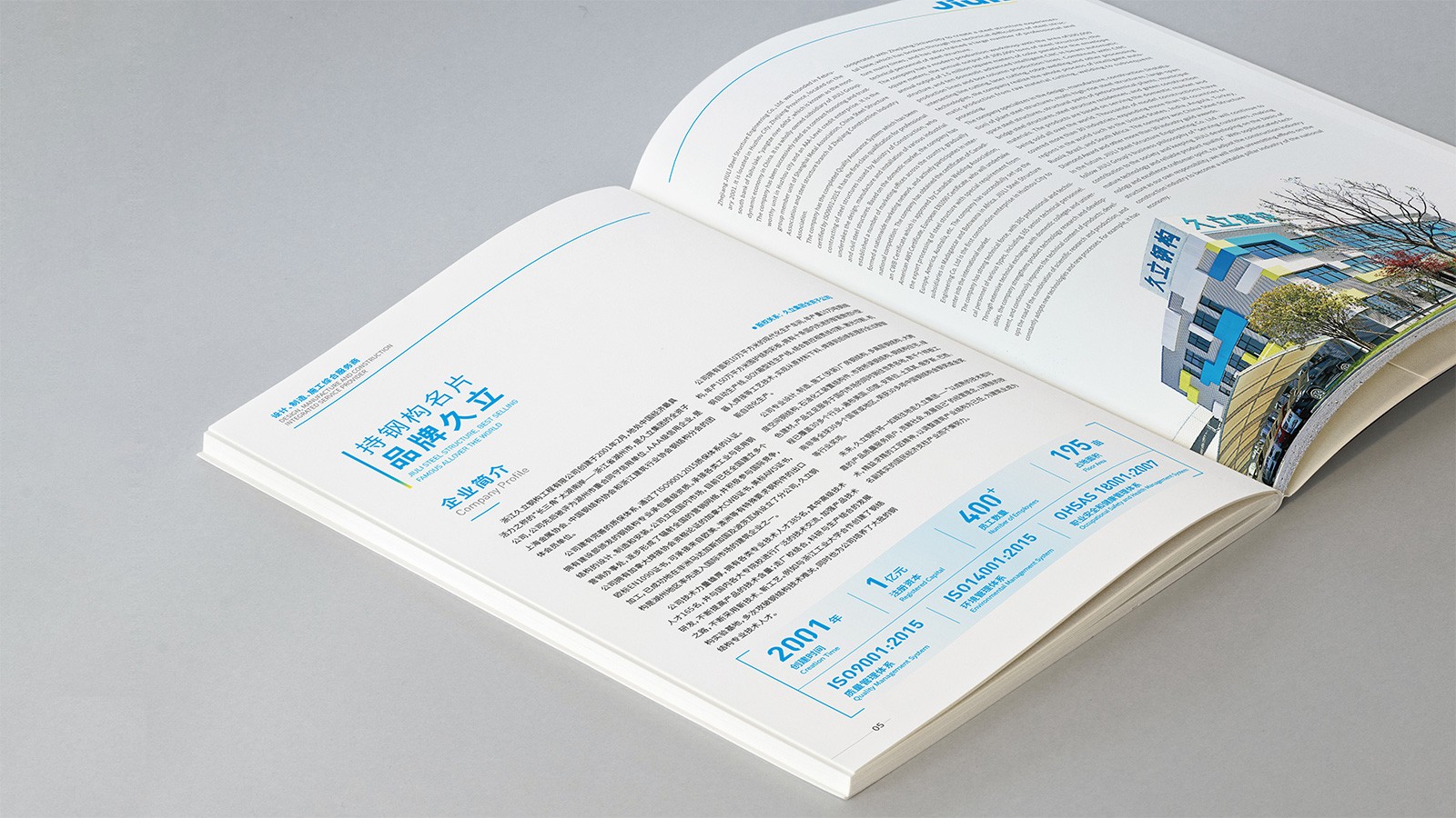 浙江久立鋼構工程有限公司創建于2001年2月,地處中國經濟最具活力之稱的“長三角”太湖南岸——浙江省湖州市,是久立集團的全資子公司,公司建有完善的質保體系,通過了ISO9001:2015質保體系的認證。擁有建設部頒發的鋼結構專業承包壹級資質。承接各類工業與民用鋼結構的設計、制造和安裝。公司立足國內市場,目前已在全國建立多個營銷辦事處,逐步形成了輻射全國的營銷網絡,并積極參與國際競爭?!耙猿墒斓募夹g和可靠的產品質量服務用戶,貢獻社會,發展自己”是久立的文化,可見公司對宣傳冊設計有著較高的要求,因此委托石特設計一本體現公司理念的宣傳冊。