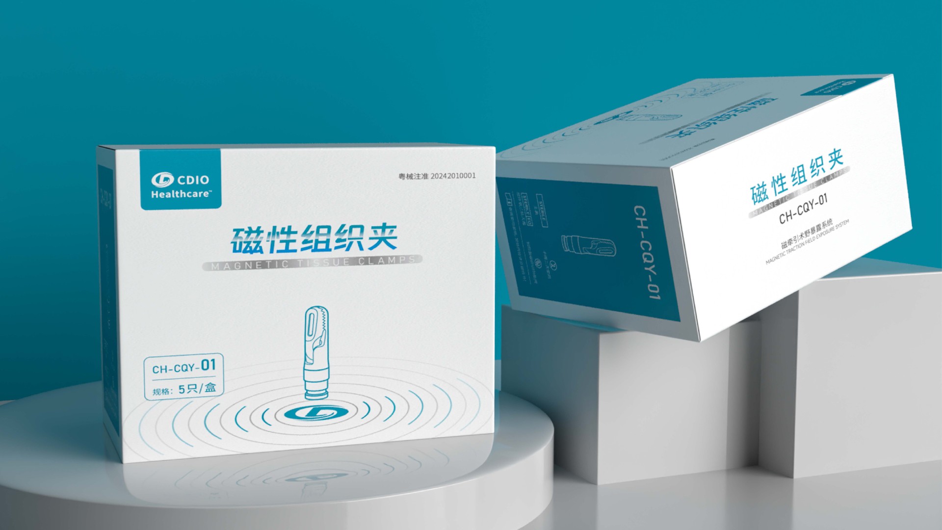 線性插畫:磁性組織夾以線性的方式呈現,以確保主要信息清晰可見。圖像的線條簡潔、現代,與醫療領域的創新精神相平應。