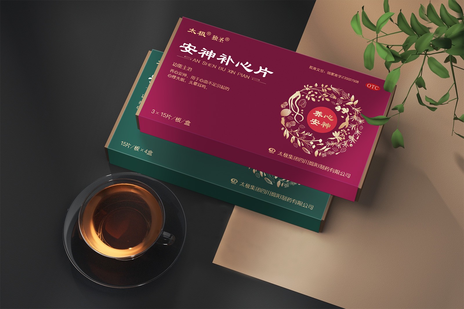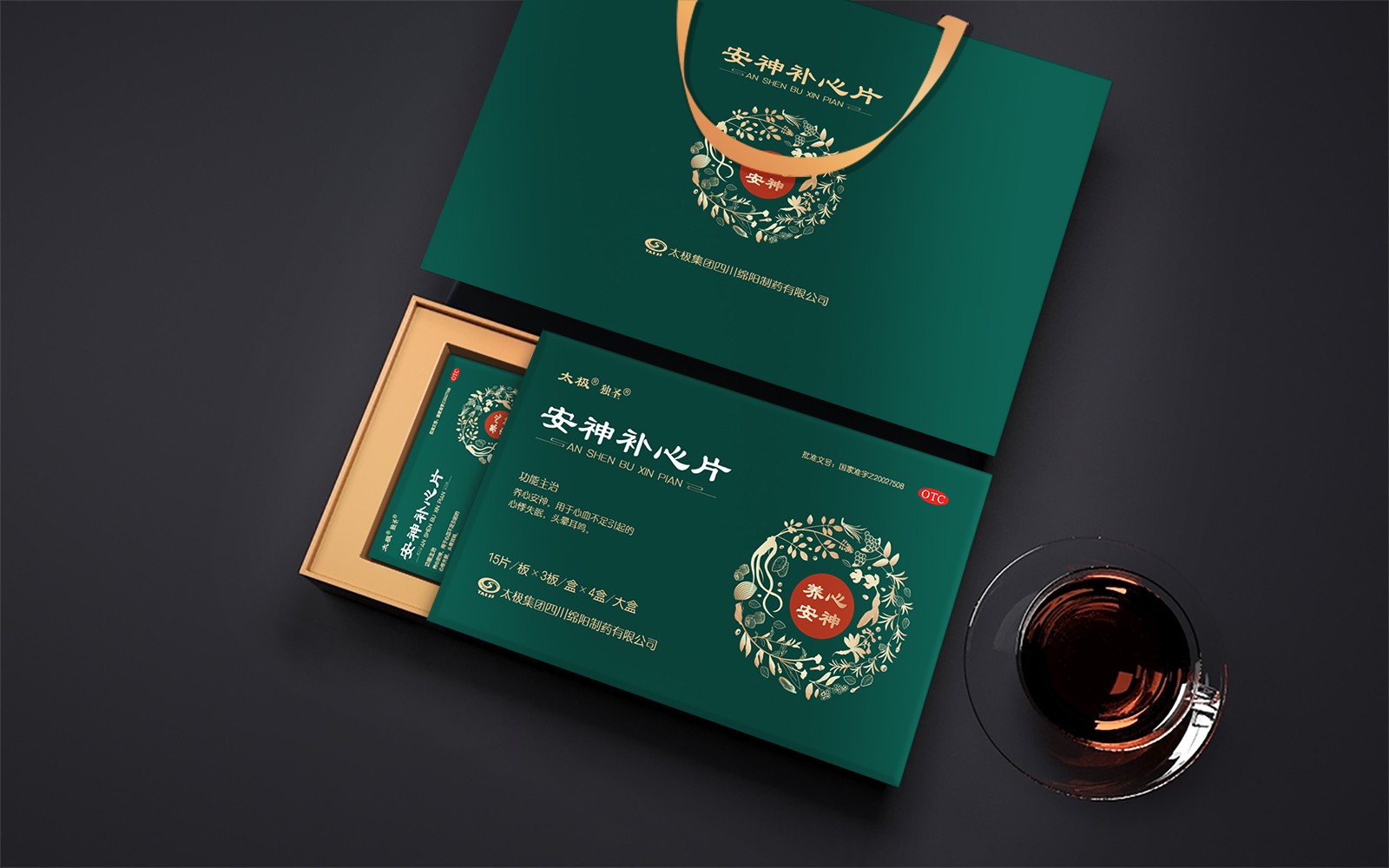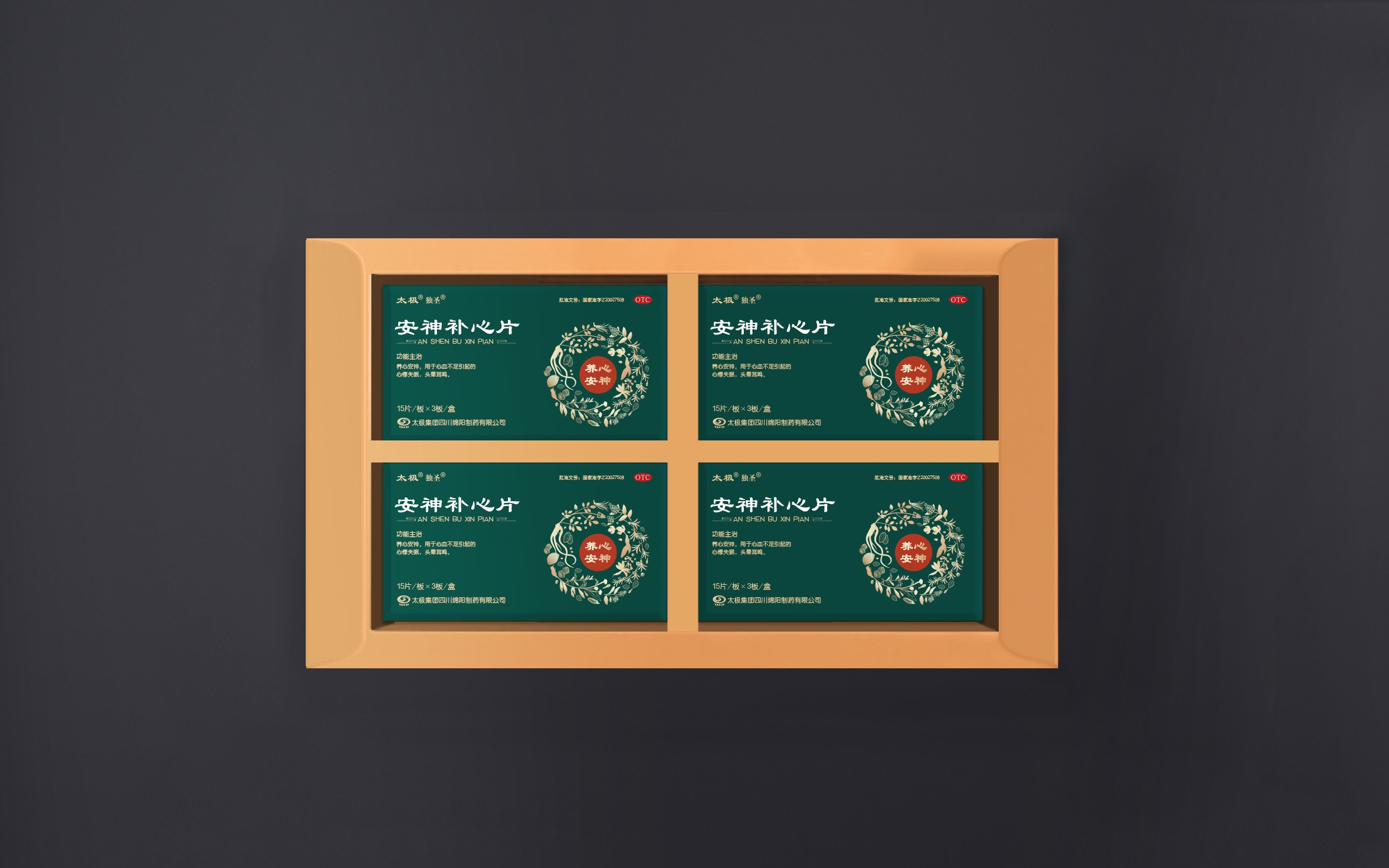 畫面以傳統(tǒng)色為主基調(diào),傳統(tǒng)色彩強(qiáng)烈,古方氣息濃郁,同時(shí)整體版式簡(jiǎn)潔大方;畫面中,+味藥材環(huán)繞,代表取道地藥材之精華,將中藥以簡(jiǎn)形插畫表現(xiàn)出來,藥材靈動(dòng)、真實(shí)、原生態(tài)的形象既增加設(shè)計(jì)之美感,又凸顯產(chǎn)品之珍貴,更彰顯企業(yè)與品牌之底蘊(yùn)。