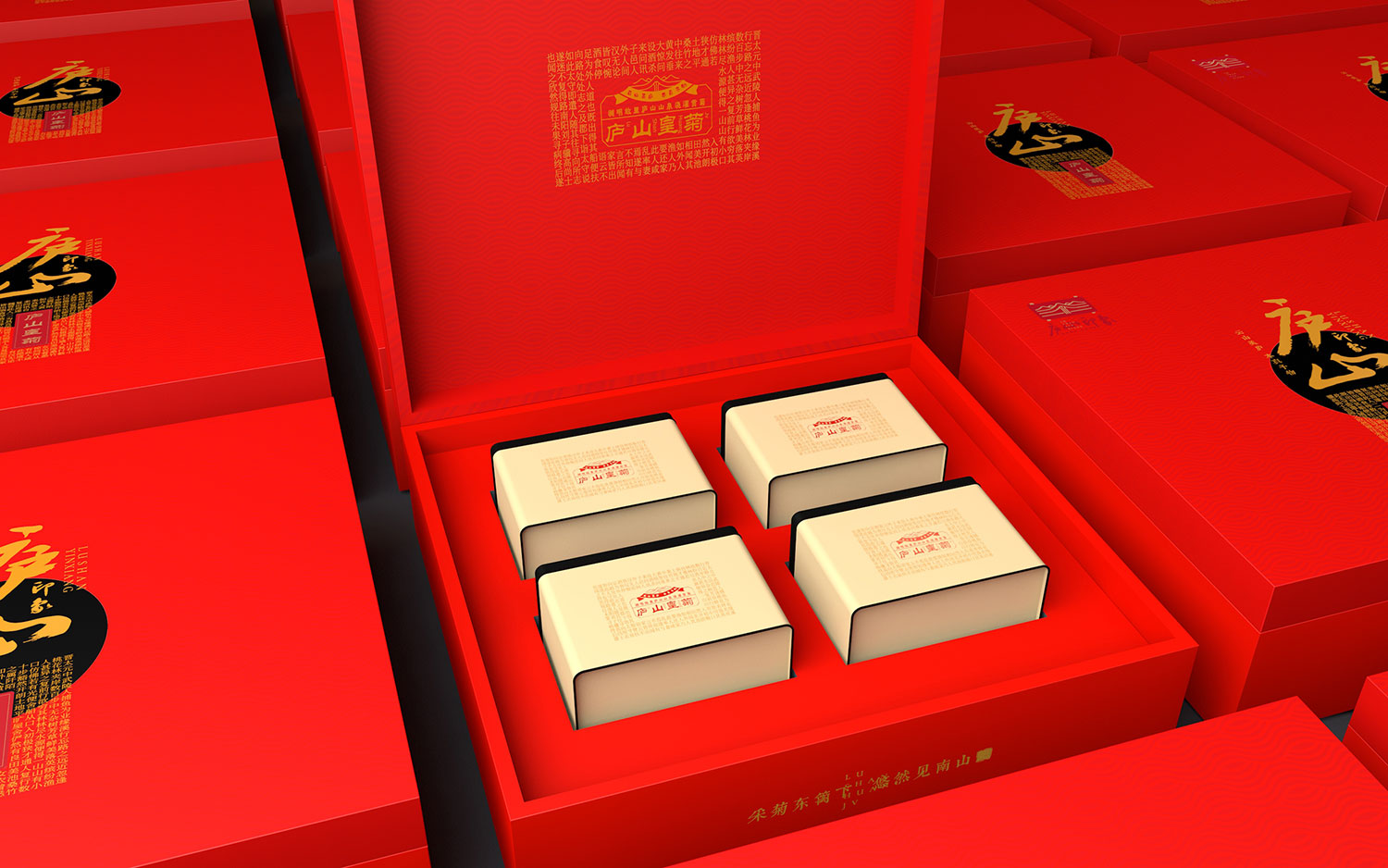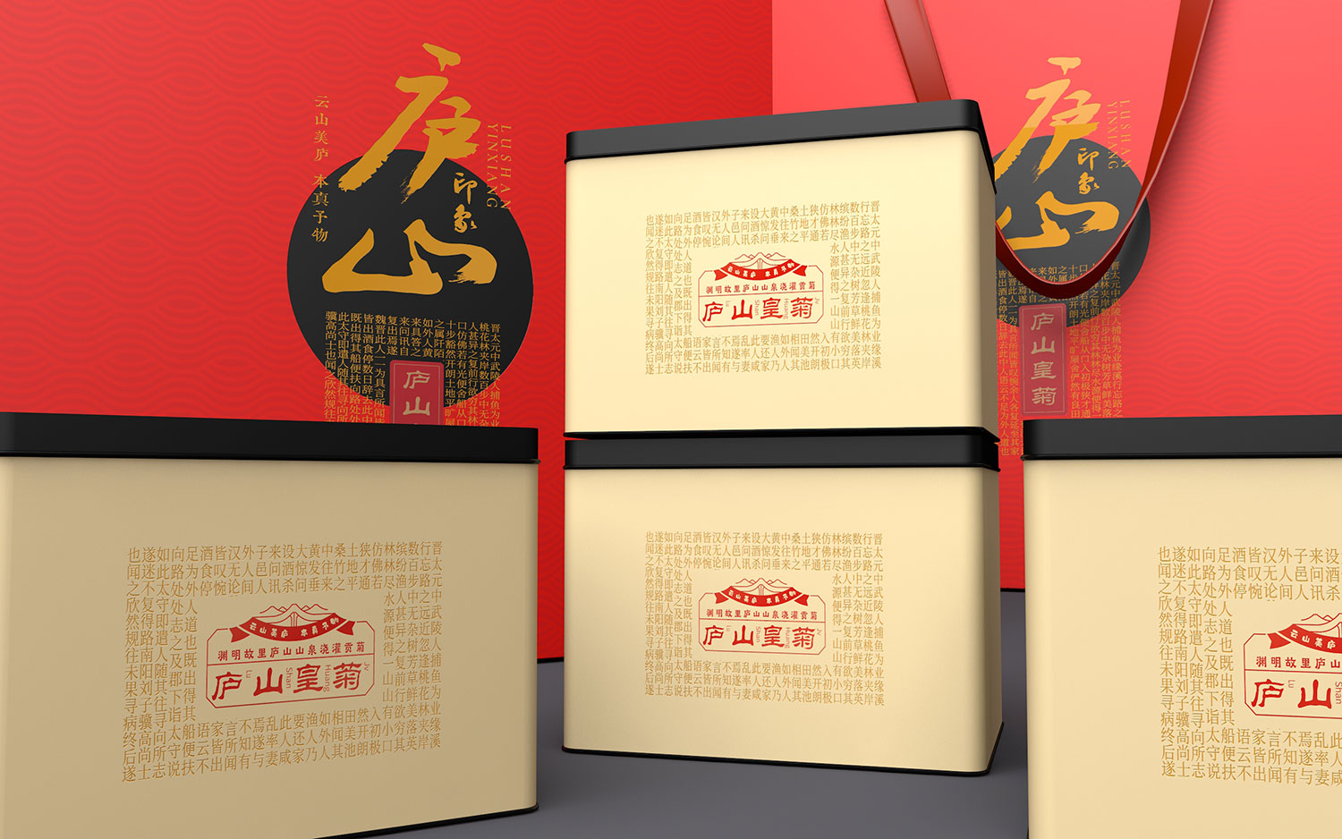 本次設計以體現廬山天然的物質文化為主題,進行標志設計、品牌價值設計、包裝設計。在LOGO設計上,根據品牌名作為基礎,以白鹿洞書院的書簡為形+五老峰為骨+廬山瀑布為韻進行創作。在品牌價值的設計上,根據策劃后的文字輸出進行生動的形象設計。在包裝設計上,以天空和田野作為主要的設計元素,把天然體現得淋漓盡致。