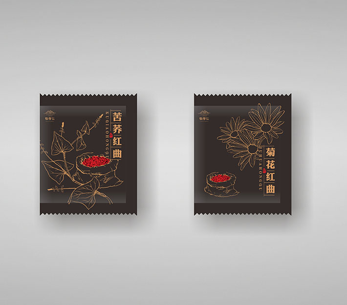 紅曲系列是敬存仁生產(chǎn)產(chǎn)品中的一個(gè)系列,它有苦蕎紅曲和菊花紅曲,石特為它做了全面的包裝策劃。這個(gè)系列產(chǎn)品仍然延續(xù)其它系列產(chǎn)品風(fēng)格采用全原創(chuàng)手繪設(shè)計(jì),該系列下兩款產(chǎn)品整體風(fēng)格相同,不同產(chǎn)品名字手繪不同植物的形狀加以區(qū)分,這樣整體顯得統(tǒng)一而又便于區(qū)分。